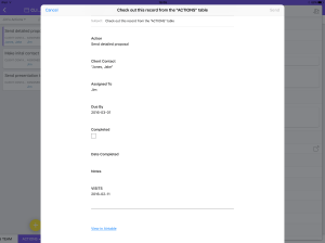 Here’s an example of an action record being emailed.