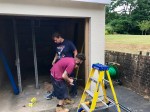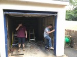 - Once the door is installed, PVC boards cover the fascia and the frame are fitted by Danny and Philip.