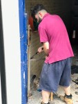 - Michael and Jack start to put the new frame in.
